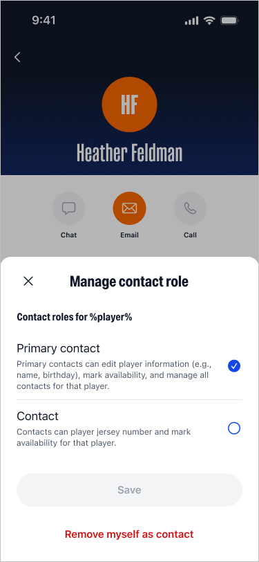 TeamSnap ONE lets you manage your player's contacts directly from the app. What you can do depends on whether you're a primary or non-primary contact.