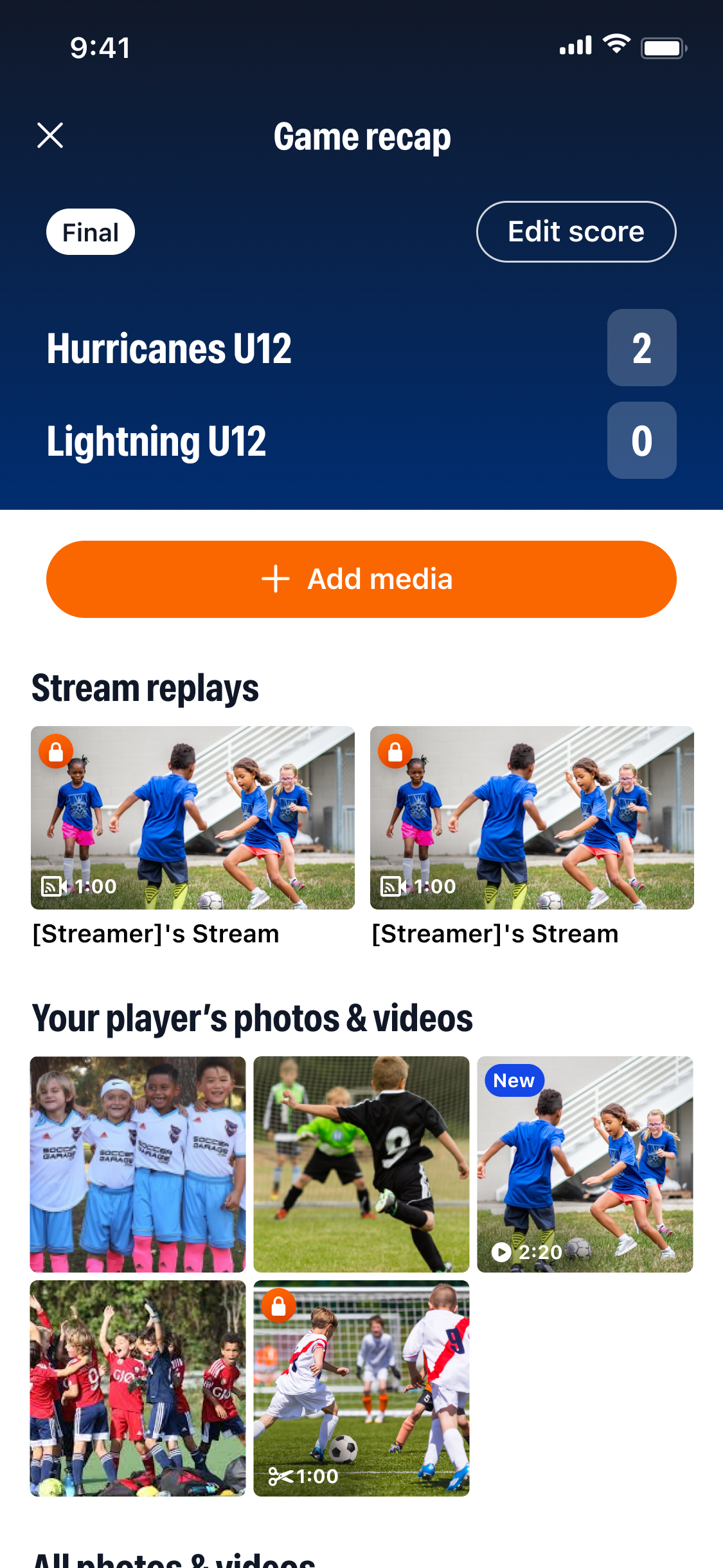 The game zone is the central place to share and view all media—including photos and videos—for a specific game or event.